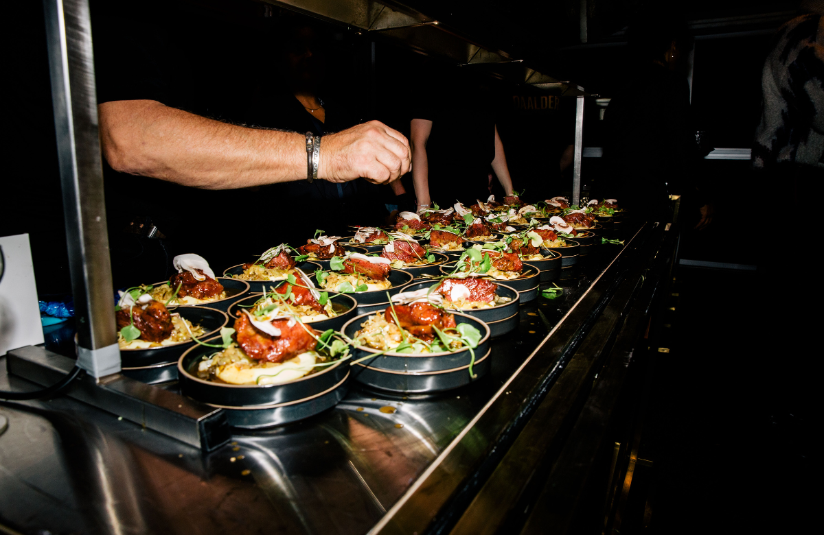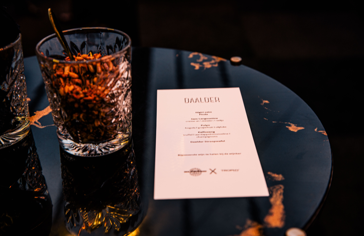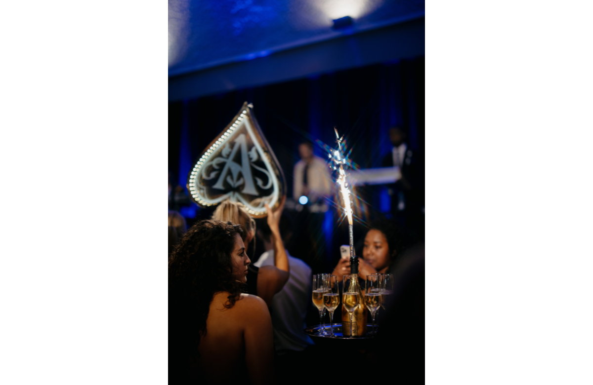 Als afsluiting werd de chef kok en zijn team door twee vrouwelijke modellen op spectaculaire wijze door de zaal begeleid, waarna iedereen een glas van de Armand de Brignac Ace of Spades champagne geserveerd kreeg.