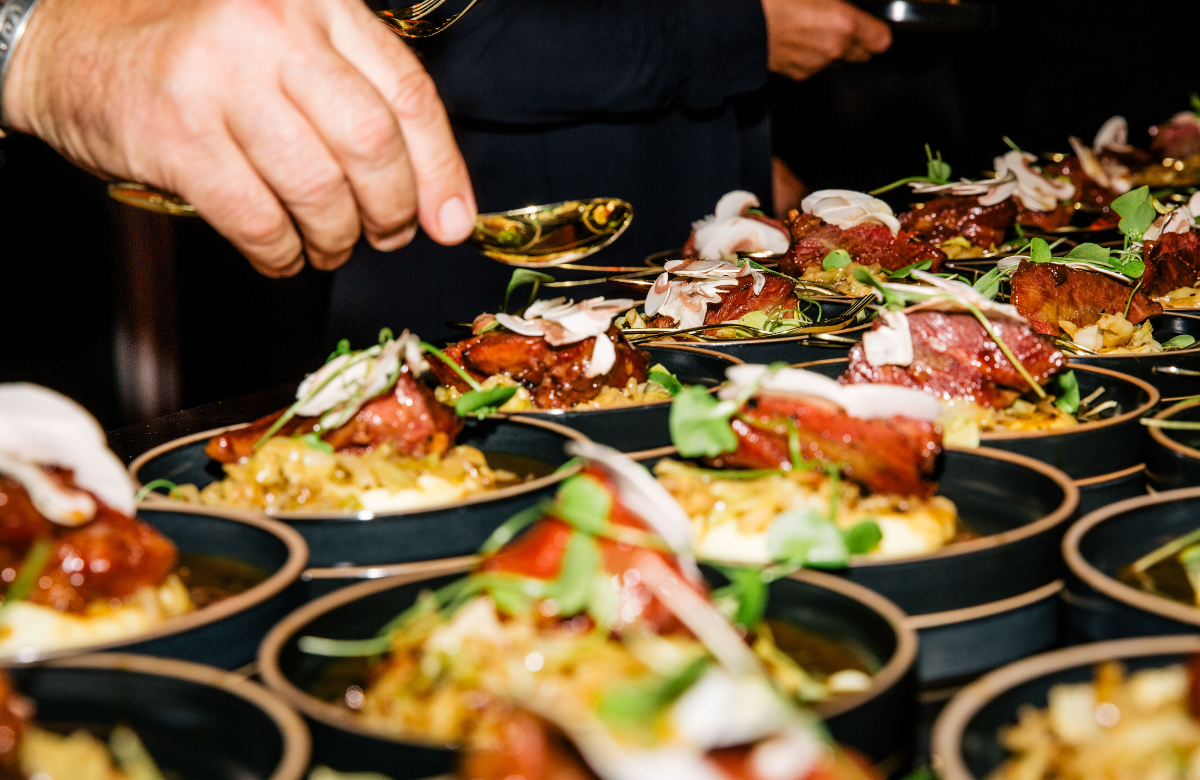 Als afsluiting werd de chef kok en zijn team door twee vrouwelijke modellen op spectaculaire wijze door de zaal begeleid, waarna iedereen een glas van de Armand de Brignac Ace of Spades champagne geserveerd kreeg.