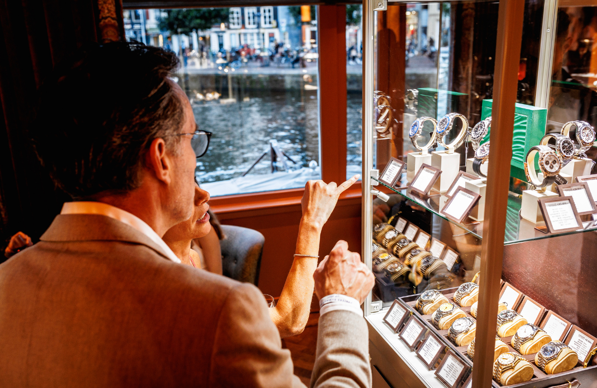 De zomerse warmte en de grachten van Amsterdam vormen samen met het iconische vijfsterrenhotel De L’Europe, gelegen aan de Amstel in het hart van de Nederlandse hoofdstad, de schitterende juwelen en horloges van merken zoals Breitling, Chopard, Jacob & Co., Longines, Messika, OMEGA, Tudor en onze eigen GASSAN, een prachtige combinatie.