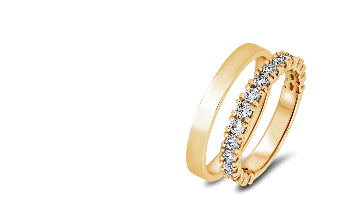 A yellow gold wedding ring with diamond has a very exclusive and classic look. The diamonds we use at GASSAN are of high quality and remain beautiful for life. You can choose from various types of diamonds, including the GASSAN 121®.